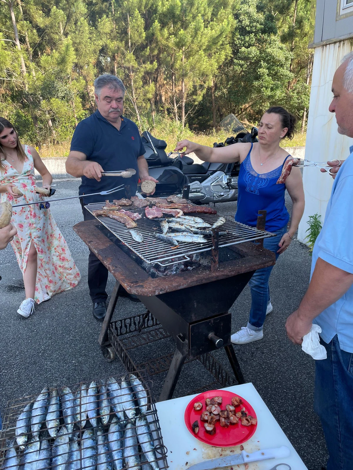The sardines and fêveras were barbecued and served with cornbread and a salad of peppers and tomatoes, all washed down with good wine and beer. There was also plenty of typical sweets to sweeten the mouth.