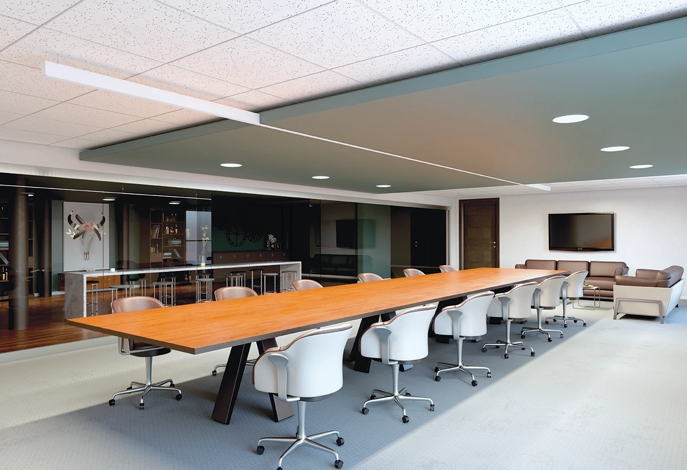 High-tech optical system with bOPTICS reflector for high visual comfort lighting (UGR<10), bFLEX opal diffuser that guarantees soft and uniform light without visible spots, or in the version with 1, 2 or 3 SPOTS for more directional lighting.