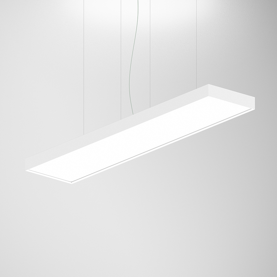 • For suspended version it is necessary to order the suspension, the current supply cable and the ceiling rose. Please order separately; • In order to guarantee total light uniformity on the ceiling in the suspended version, installation must be carried out at a minimum distance of 500 mm.