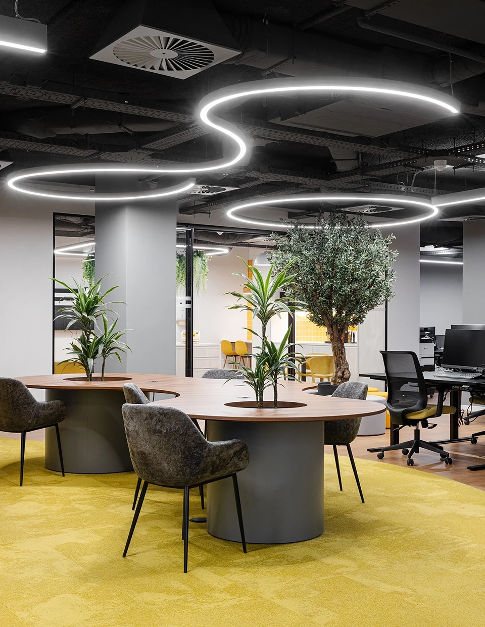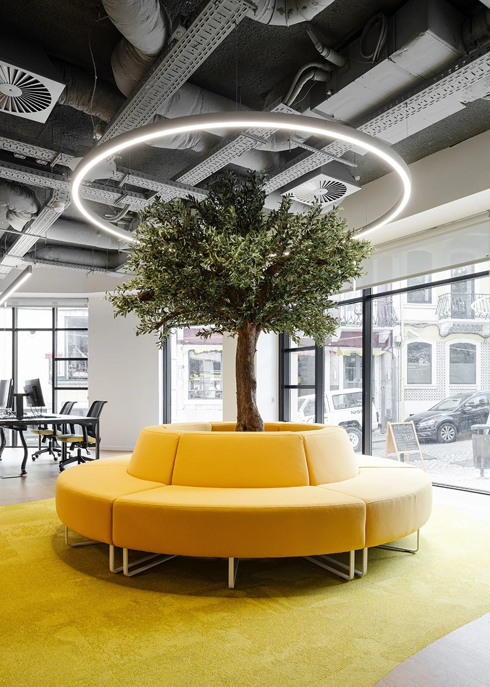 Possui excelentes propriedades acústicas e de controlo de humidade, ajudando a diminuir o ruído e a melhorar o ambiente de trabalho.