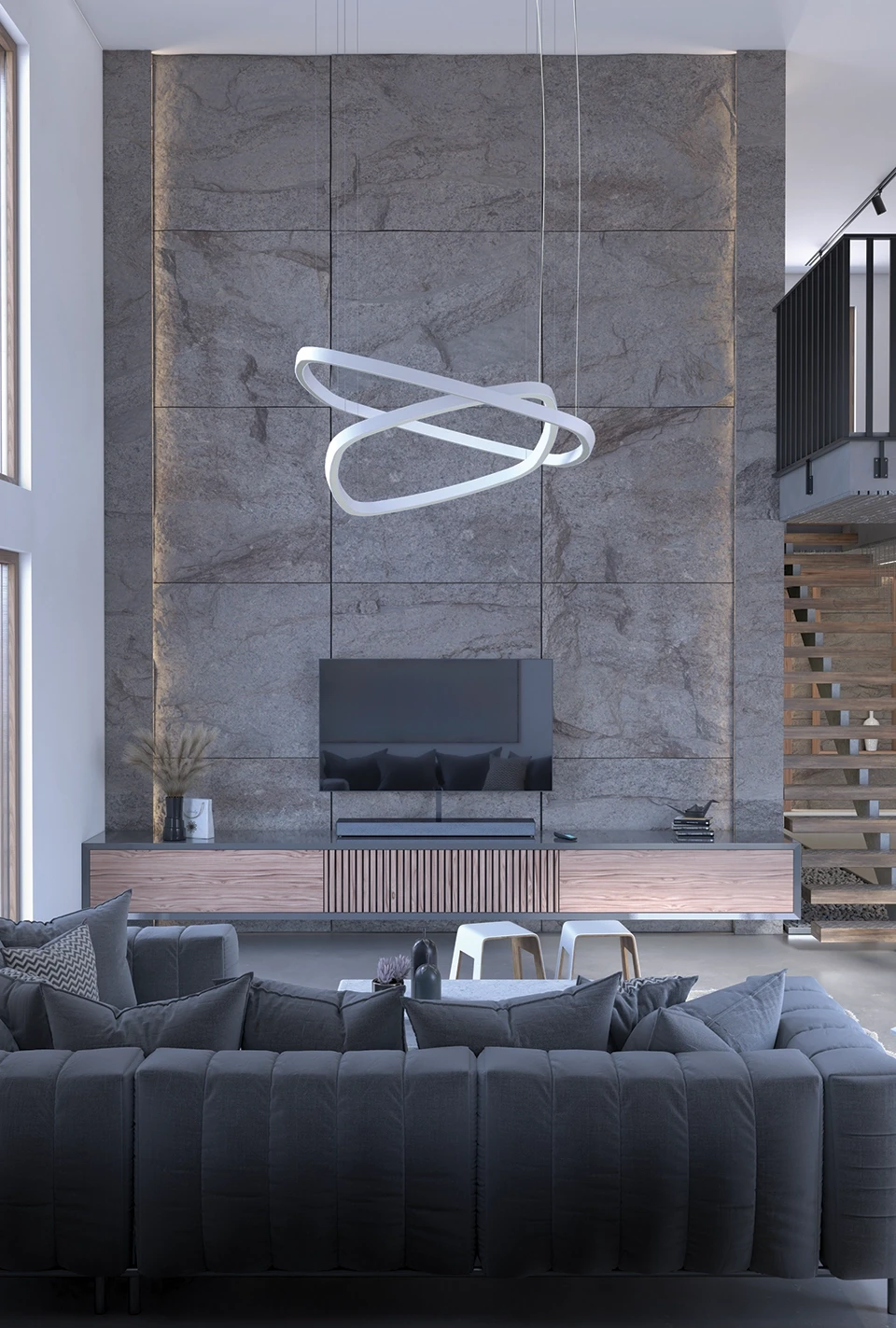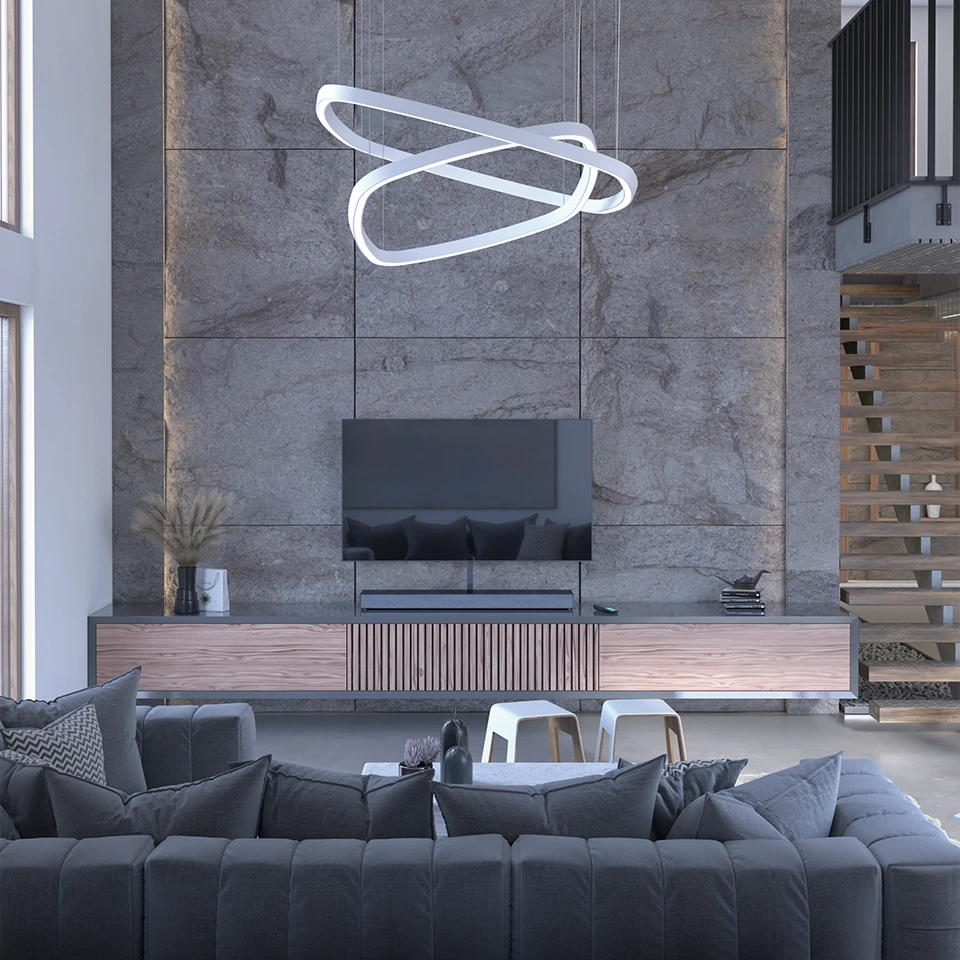 Suspensões e cabo de alimentação disponíveis com comprimento de 1500, 3000 ou 6000 mm.