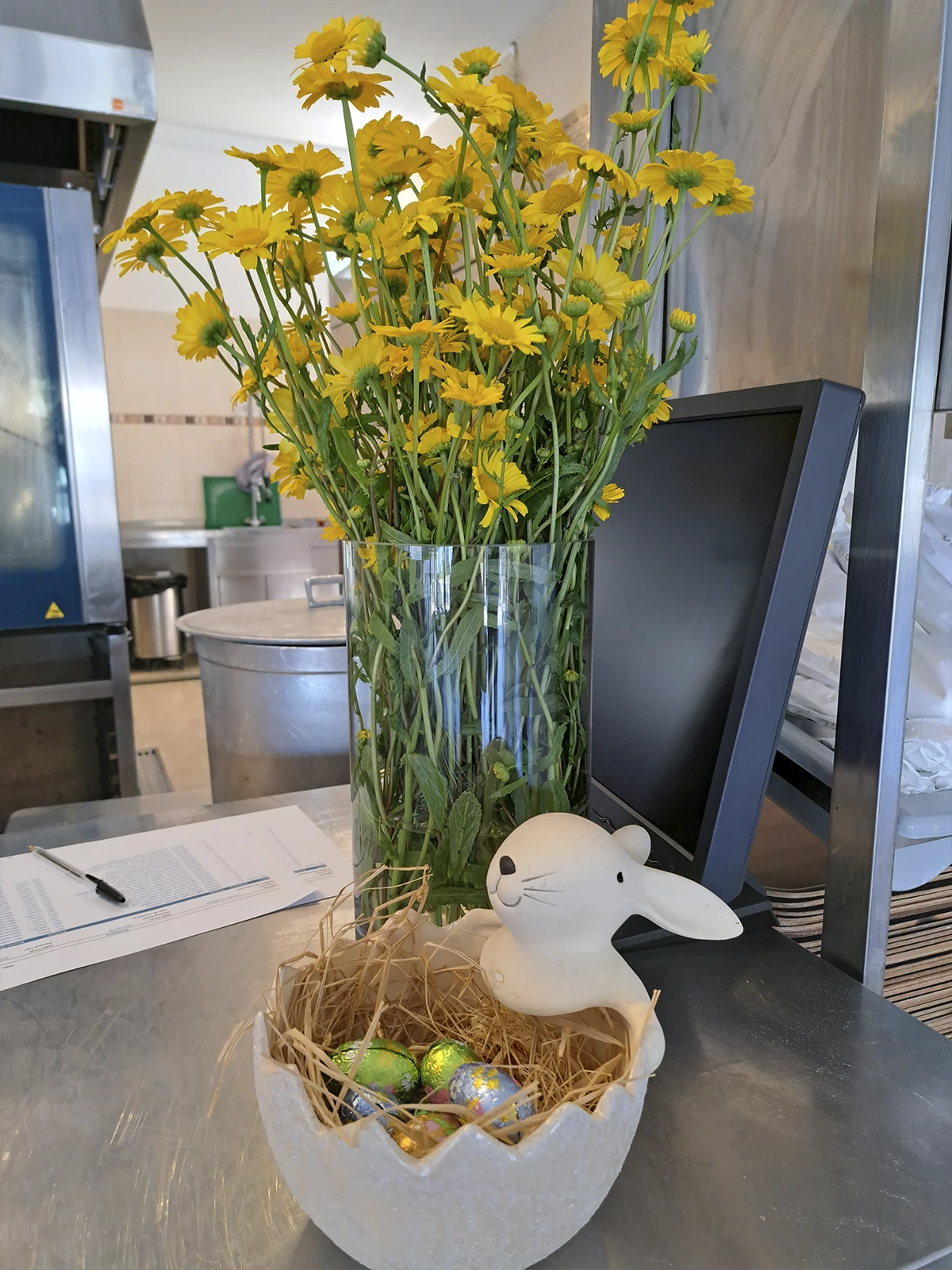 Além disso decorou o ambiente das instalações de forma a todos entrarem no clima e espírito da Páscoa.