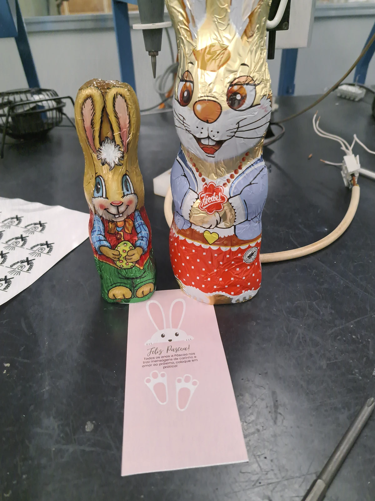 Esta é a primeira vez que a empresa assinala a efeméride oferecendo aos seus funcionários como presente ovos de chocolate, que foram distribuídos de forma original por um Coelhinho da Páscoa.