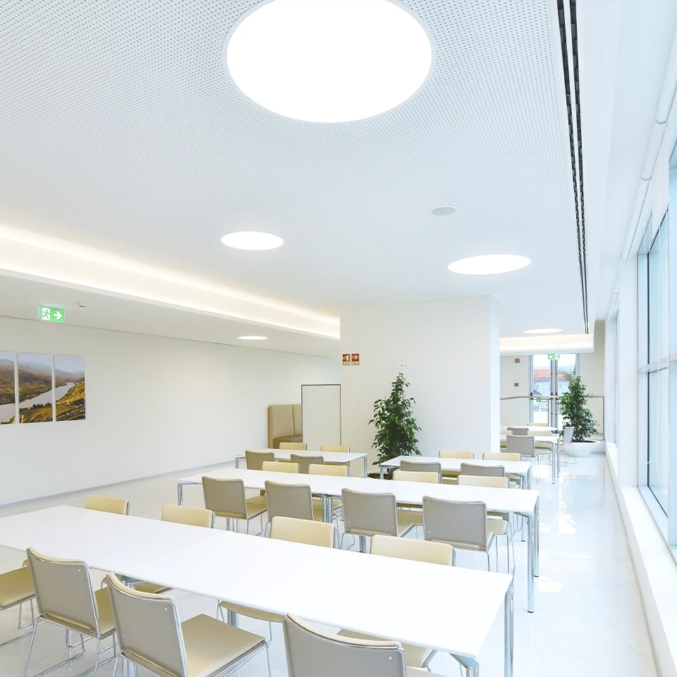 Sie garantiert eine gleichmäßige und ausgewogene Beleuchtung, ideal für große Anwendungen, die eine homogene und effiziente Abdeckung erfordern.