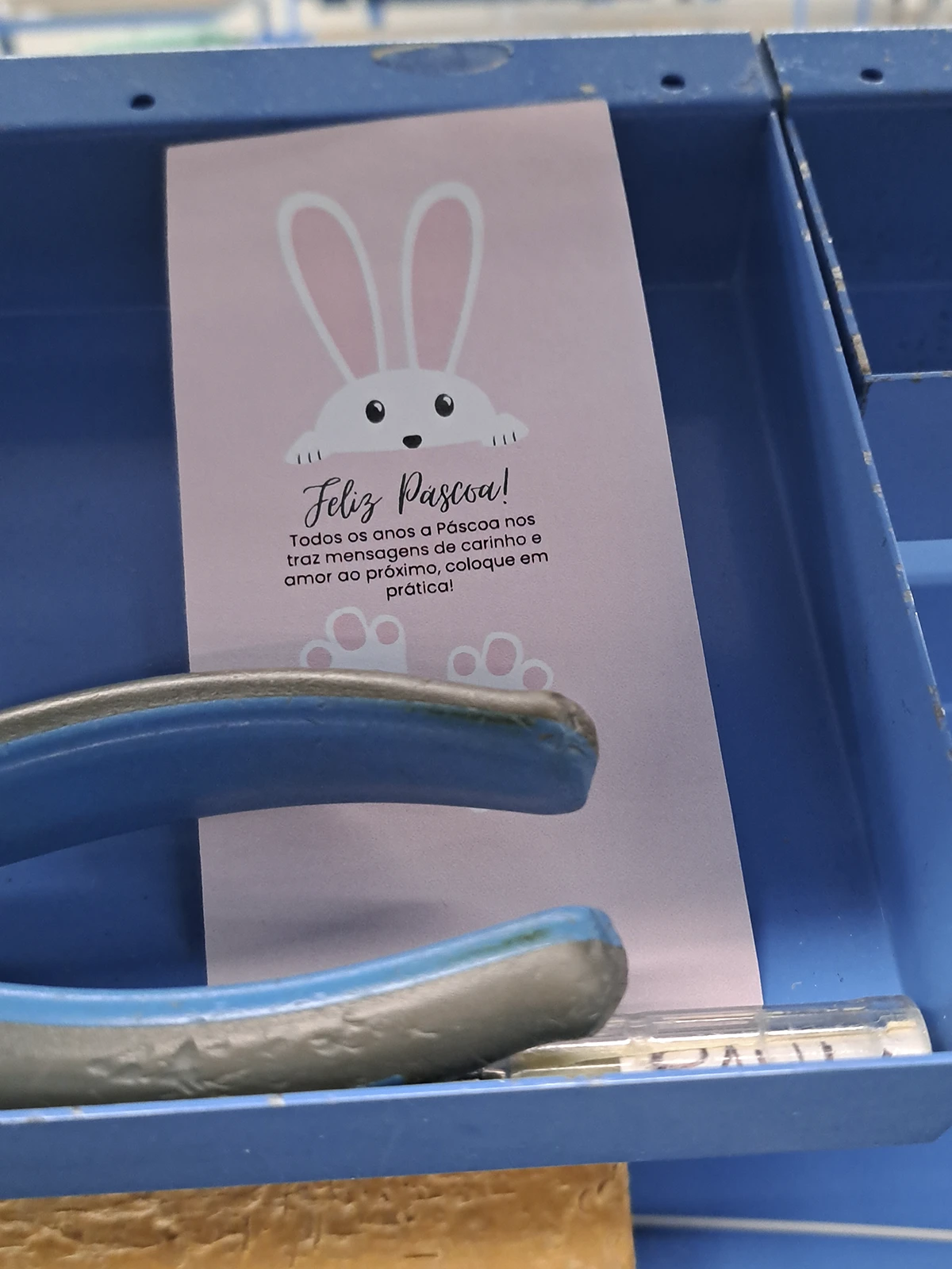 There were rabbit footprints scattered around the workstations, hanging eggs to decorate the outside of the premises and phrases alluding to the festive season.