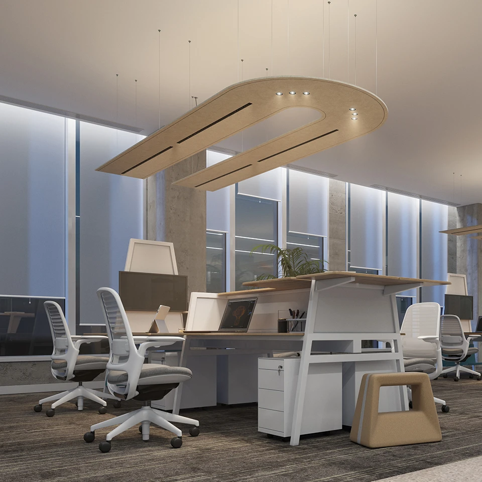 Conçu pour optimiser l’absorption acoustique, il améliore la clarté des conversations à proximité tout en atténuant les bruits extérieurs, créant un environnement plus calme et plus productif. Réduction jusqu’à 70 % de la réverbération. ISO 11654:1997 : αw = 0,25 ISO 354:2003